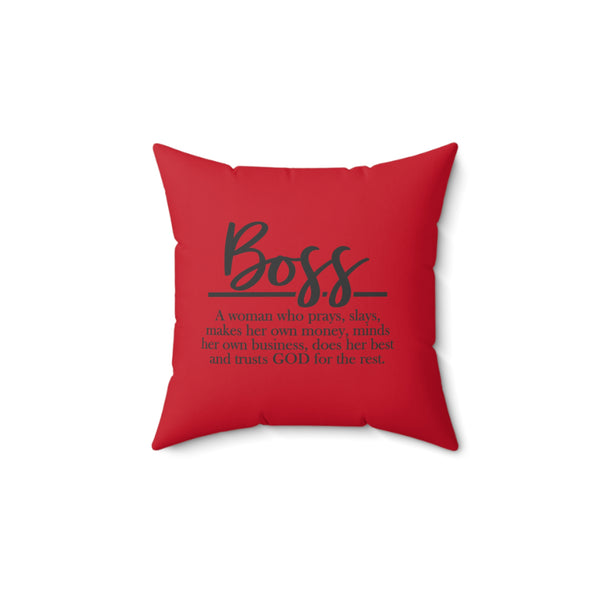 Room accents shouldn't be underrated. These beautiful Graphic Custom Designed "SHE MOTIVATES"/"BOSS" Spun Polyester Square Pillow w/Cover-REDindoor pillows in various sizes serve as statement pieces, creating a personalized environment.