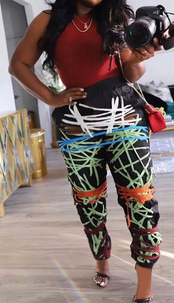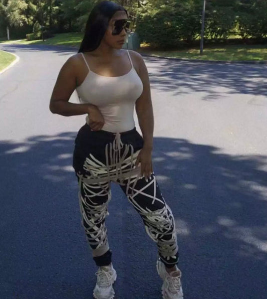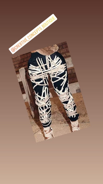 Professional and informative product description for "String Me Knot w/Pockets", a cotton jogger featuring a high waist and fitted design.